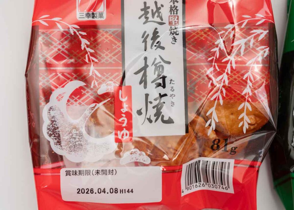 2.3倍の容量のチャック付き大袋の越後樽焼を販売しているお店もありました。「しょうゆ」でよければオーケー 溝ノ口店の会員現金支払いが最も安い価格でした!